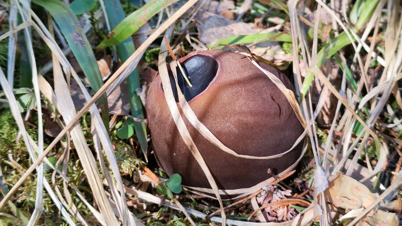 В национальном парке "Зигальга" обнаружили редкий гриб. Это саркосома шаровидная. Назвали ее так за необычную форму. Она действительно напоминает шар.