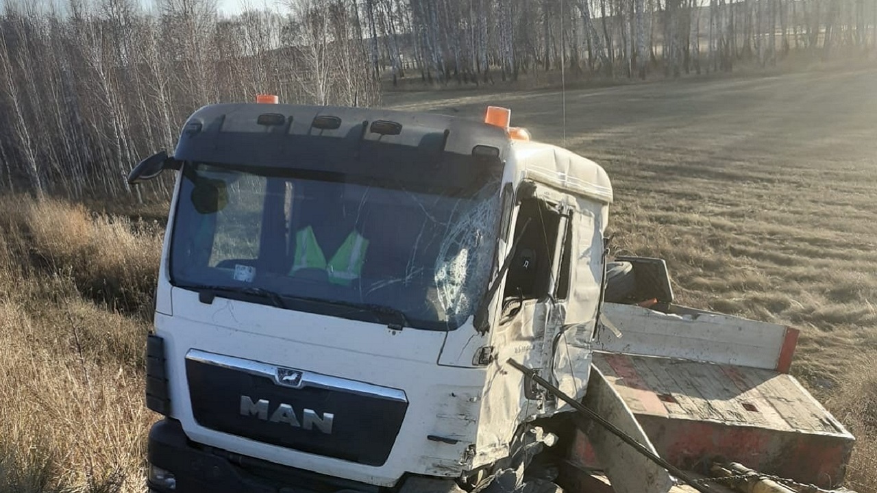 Кроме того, водитель легковой иномарки Kia, двигавшийся в том же направлении, что и MAN, чтобы не "влететь" в грузовик сзади, съехал в кювет. В результате машина опрокинулась.
