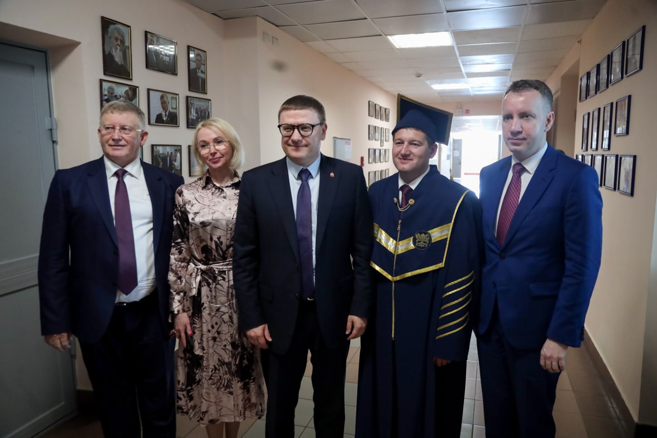 Губернатор Алексей Текслер поблагодарил президента ЮУрГУ Александра Шестакова, предыдущего ректора университета, за многолетний труд и вручил ему награду за заслуги перед Челябинской областью.