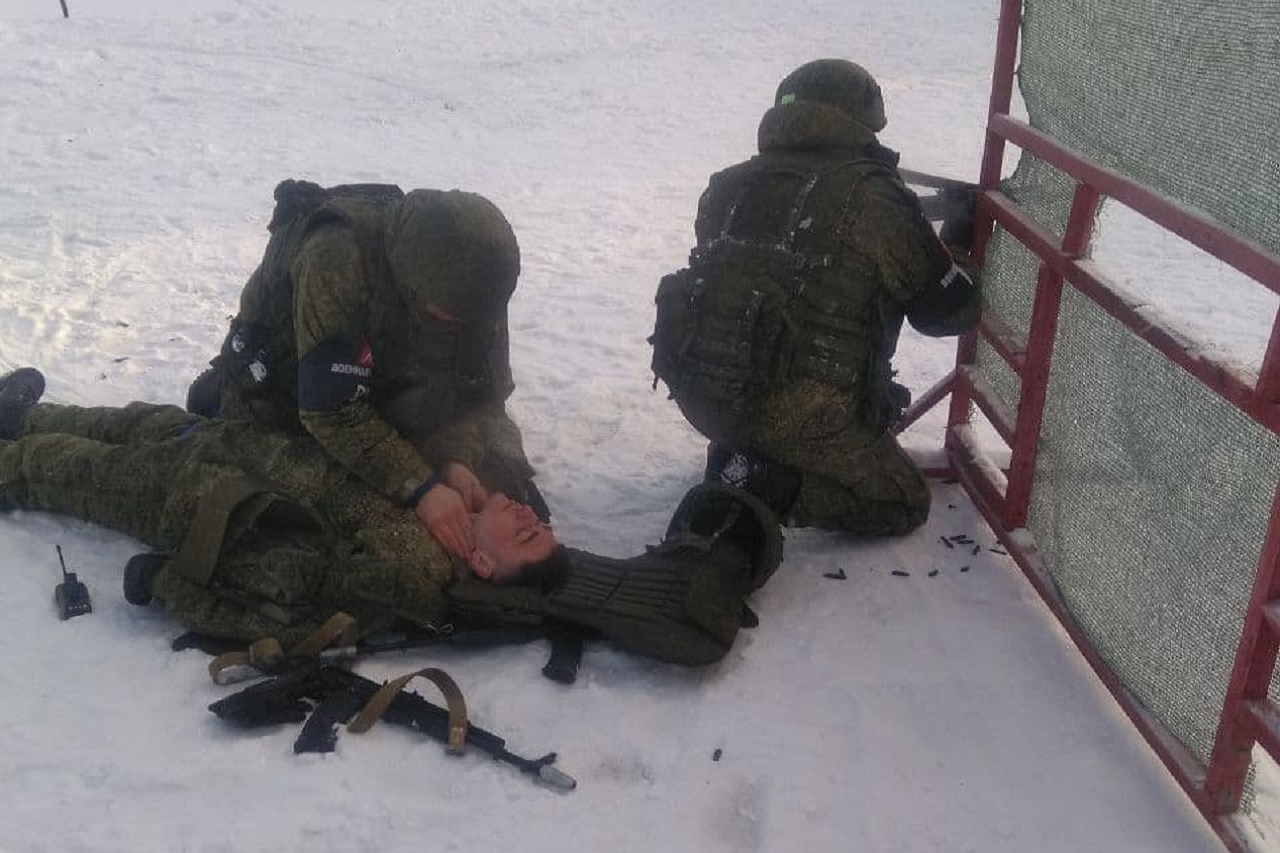 Военный полицейский серьезно ранен, на его патрульную группу напали условные террористы. Под обстрелом товарищи пытаются ему помочь: остановить кровь и транспортировать его в безопасную зону. Таков сценарий сегодняшних учебных действий.